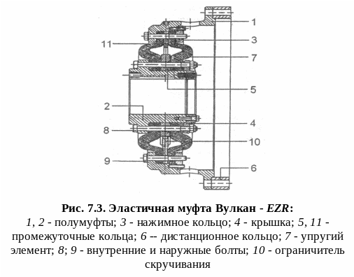 В соединительных эластичных муфтах широко используются упругие металлические и неметаллические (преимущественно резиновые) элементы самых разнообразных конструктивных исполнений.