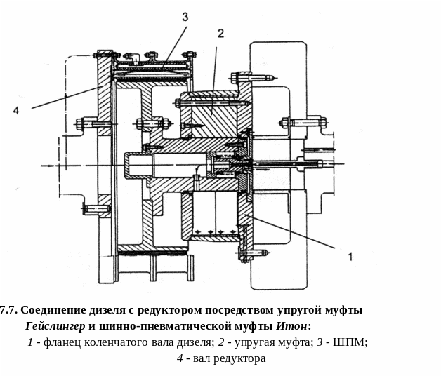 - снижение нагрузок на подшипники и валы редуктора и дизеля, возникающих из-за деформаций корпуса судна;