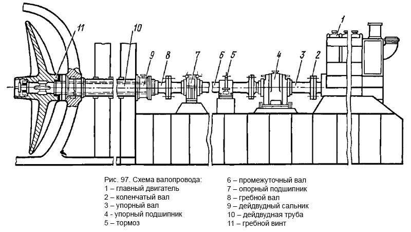 Пример конструктивной схемы судового валопровода с прямой передачей приведен на рис. 3.1.