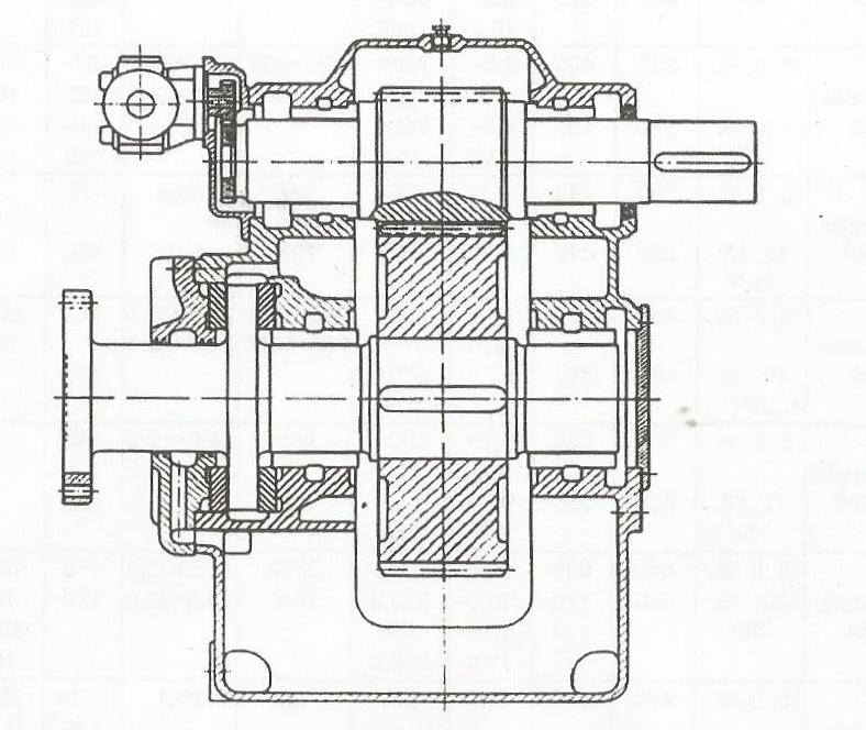 Редукторы внешнего зацепления одномашинных агрегатов обычно выполняются одноступенчатыми, со смещением ведущего и ведомого валов в одну горизонтальную (рис. 4.1) или одну вертикальную (рис. 4.2) плоскость. Однако если необходимо соосное расположение двигателя и валопровода, прибегают к двухступенчатым конструкциям редукторов (рис. 4.3).