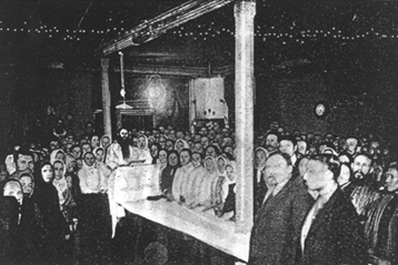 Чурикова. Слева за кафедрой, с чёрной бородой, - И.А. Чуриков. Петербург, 1912