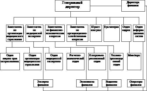 У заместителя генерального директора в непосредственном подчинении руководитель финансово-экономической службы. В подчинении у руководителя службы обязательного медицинского страхования находится отдел медицинской экспертизы, отдел защиты прав застрахованных, отдел организации медицинского страхования, отдел информационных технологий и эксперты филиалов. Генеральный директор, и его состав входят в административно-управленческий персонал (АУП).