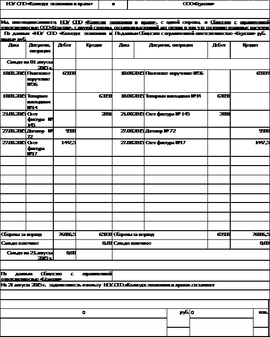 Для того чтобы акт сверки был актуальным, лучше составлять его с начала сотрудничества или же с момента подписания последнего акта сверки. Кроме составителя на этом документе обязательно должен подписаться директор организации.