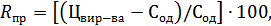 Пр - прибуток від реалізації річного обсягу продукції, тис. грн./рік.