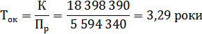 окупності інвестицій (Ток) визначаємо за формулою, роки: