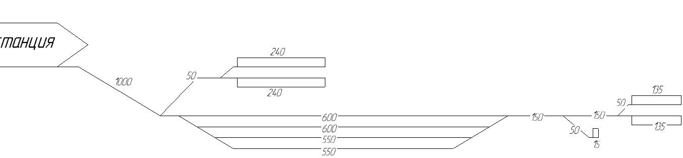 Схема путевого развития пути необщего пользования с размещенными складами представлена на рисунке 3.1.