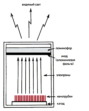 В обоих случаях берут два плоских электрода, один из которых покрывают слоем из углеродных нанотрубок, ориентированных перпендикулярно ко второму. Если на электроды подается такое напряжение, что нанотрубка заряжается отрицательно, из нанотрубки на второй электрод излучается пучок электронов: ток в системе идет. При другой полярности нанотрубка заряжается положительно, электронная эмиссия из нее невозможна и ток в системе не идет.