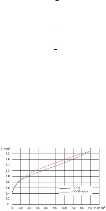 Рис. 5.12. Зависимость плотности компактирования УНМ "Таунит" от приложенного давления P
