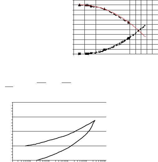 На основании рис. 5.15, 5.16 расчетным путем найдены: суммарная поверхность измеренных пор – 69,66 м2/г; характеристический радиус пор – 39 Å; общая пористость ≈ 52 %; суммарный объем пор – 0,60033 см3/г. Установлено, что радиус пор у УНМ "Таунит" примерно в 4 раза больше, чем у активированных углей, причем преобладают переходные поры, а объем пор сравним с этим параметром для активированных углей.