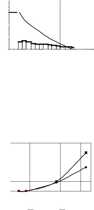 Суть метода заключается в определении объема ртути, вытесненной порошком, масса которой известна [20]. Полученные для образцов № 1 и 4 значения кажущейся плотности составили 0,816 и 0,905 г/см3, соответственно. С учетом полученных результатов были проведены расчеты дисперсного состава исследуемых образцов. Квадратичная экстраполяция экспериментальных данных позволила определить медианные диаметры частиц для каждого из образцов, которые соответствуют точке пересечения интегральных кривых. Интегральные кривые распределения массы частиц [12] для образцов УНМ "Таунит" по размерам D (мкм) в зависимости от относительной массы частиц представлены на рис. 5.14 (образец № 1): R3 – кри-