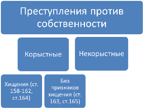 Наиболее распространенной классификацией преступлений против собственности следует считать деление их на: