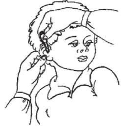 Уход за ушами. Во время ежедневного утреннего туалета, когда ребенок умывается, он должен мыть и уши. При обнаружении серной пробки в наружном слуховом проходе ее удаляют. Для этого в ухо закапывают несколько капель 3% раствора перекиси водорода или стерильного вазелинового масла, при помощи ватной турунды вращательными движениями удаляют пробку (рисунок 7).