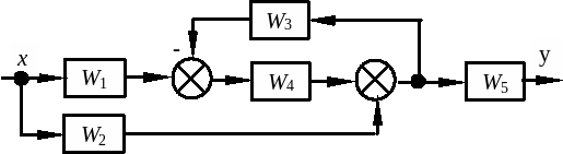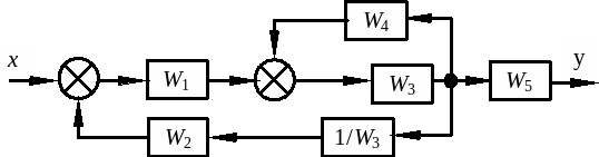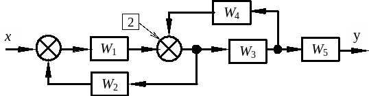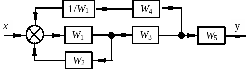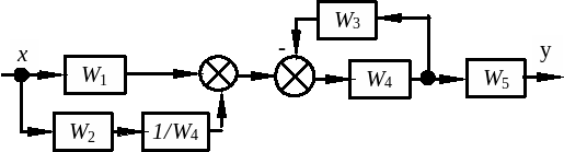 4. При переносе узла против направления прохождения сигнала, в переносимую цепь необходимо включить звенья с передаточными функциями всех элементов, встречающихся на пути между старой и новой точками включения узла.