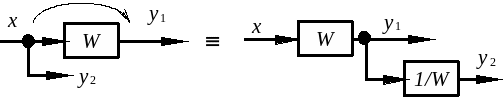 4. При переносе узла по направлению прохождения сигнала, в переносимую цепь необходимо включить звенья с передаточными функциями обратными передаточным функциям всех элементов, встречающихся на пути между старой и новой точками включения узла.