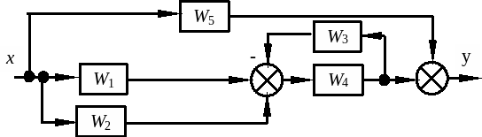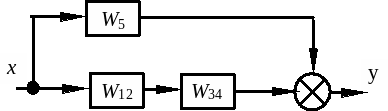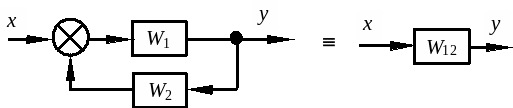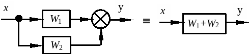 а цепь параллельных звеньев W1,W2 звеном с передаточной функцией