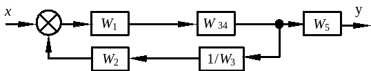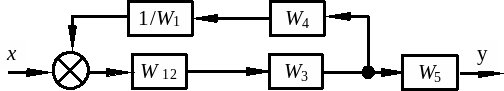 Заменяем цепь с обратной связью W12,W3W4 звеном с передаточной функцией