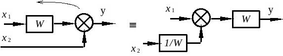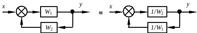 9. В системе с обратной связью можно поменять местами звено прямой цепи и цепи обратной связи, поменяв при том обе передаточные функции на обратные.
