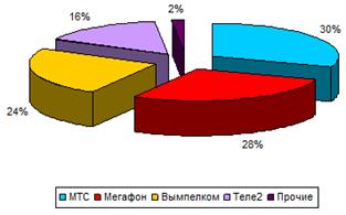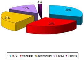 Рисунок 2.4 - Основные игроки на российском рынке по количеству абонентов