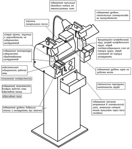 Рисунок 5.1 - Опасные и вредные факторы при заточке режущего инструмента