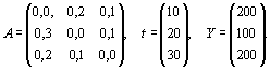 Агар тўғридан-тўғри материал харажатлари коэффициенти, меҳнат сарфи коэффициенти ва якуний маҳсулот вектори берилган ҳолда кадрларга бўлган талаб топилсин.