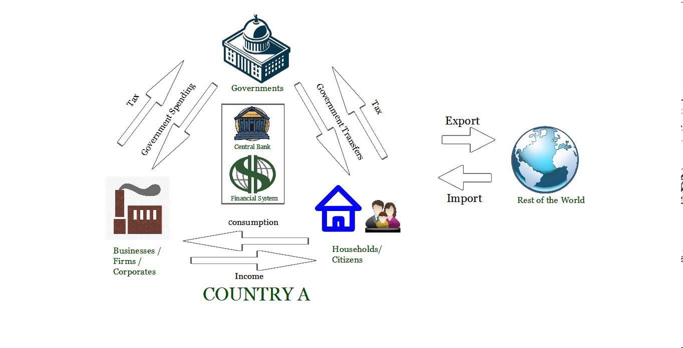 МҲТда иқтисодиётнинг 5 та асосий сектори фарқланади: уй хўжаликлари, корхоналар, молиявий сектор, ҳукумат ва ташқи сектор.