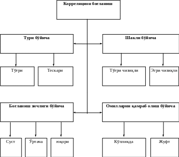 Корреляцион боғланишлар таснифи қуйидаги 1-чизмада келтирилган.