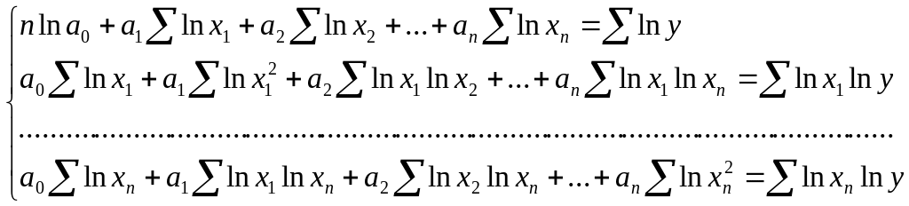 Шундан сўнг нормал тенгламалар тизимини тузишда логарифмлардан фойдаланамиз.