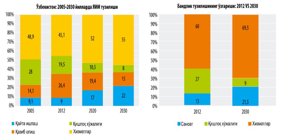 12.1-Расм. Ўзбекистонда ЯИМ ва бандлик тузилмасидаги ўзгаришлар18