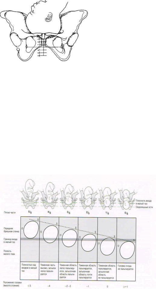 Рис. Клиническая оценка расположения головки плода в пятых частях, определяющихся над входом в малый таз