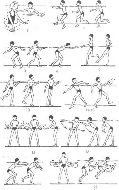 .Ходьба по дну без помощи рук со сменой направления движения.