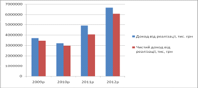 проаналізуємо основні показники за період з 2009 по 2012 роки, таблиця 2.1