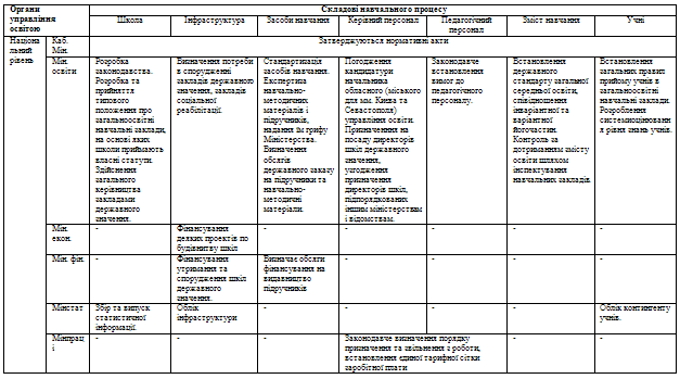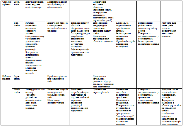 Розподіл функцій щодо організації загальної середньої освіти між різними рівнями управління освітою