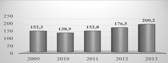 складає 200,2 млн. грн., коли за 2012 р. обсяг реалізації склав 176,5 млн. грн.