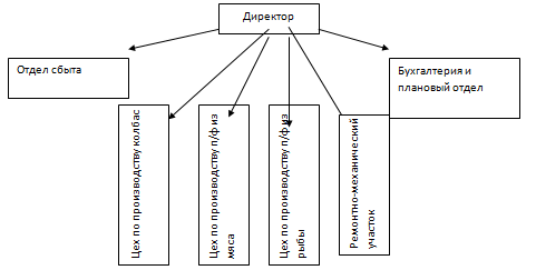 На предприятии линейная-функциональная структура управления - все подразделения подчиняются непосредственно директору. Для небольшого предприятия это наилучший вариант, так как отсутствуют какие-либо промежуточные звенья.