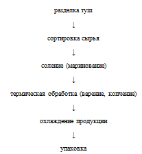 В зависимости от вида изготавливаемого деликатеса применяются следующие технологии производства: варение, варение-копчение, копчение (горячее и холодное), искусственное копчение.