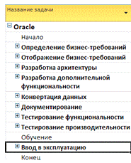 Проект содержит два уровня декомпозиции. И состоит из 9 основных этапов: определение бизнес-требований, отображение бизнес-требований, разработка архитектуры, разработка дополнительной функциональности, конвертация данных, документирование, тестирование функциональности, тестирование производительности и ввод в эксплуатацию.