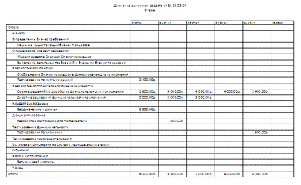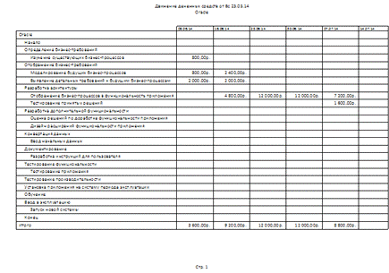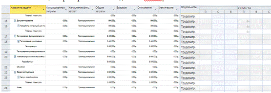 Рис. 1.6.1 Таблица затрат проекта по методологии
