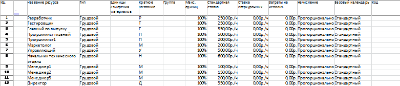 Рис.1.4 Таблица ресурсов проекта по методологии