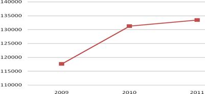 2010 год - 131 263,1 млн. тенге, 2011 год - 133 482,7 млн. тенге. (Диаграмма 1)