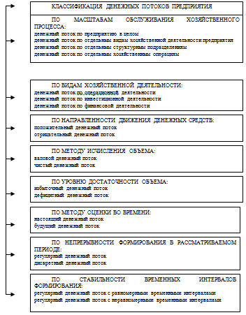 Понятие денежного потока является агрегированным, включающим в свой состав многочисленные виды этих потоков, обслуживающих хозяйственную деятельность. В целях обеспечения эффективного целенаправленного управления денежными потоками они требуют определенной классификации.