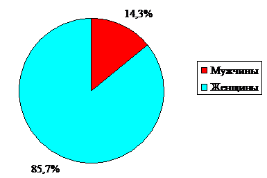большинство работников школы - женского пола (85,7%), соответственно мужчин -