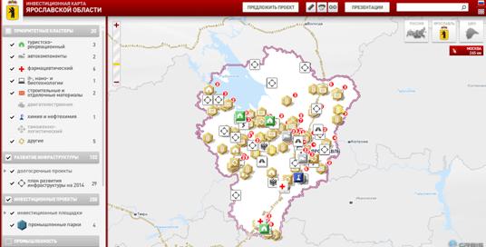 Рисунок 3.2 -Инвестиционная карта Ярославской области