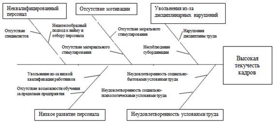 В рассмотренной диаграмме отражена основная проблема предприятия, заключающаяся в высокой текучести кадров из за отсутствия системы управления развития персонала. Данная проблема несомненно оказывает достаточно весомое влияние на деятельность организации.[11, с. 237]