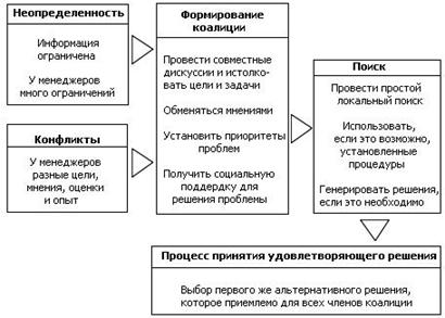Модель Карнеги указывает на то, что достижение соглашения посредством создания коалиции менеджеров является основной частью процесса принятия управленческого решения в организации. Особенно это справедливо в отношении высшего уровня менеджмента.[14, с. 225]