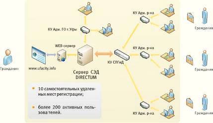 По мнению начальника отдела информационных технологий и связи администрации городского округа Уфы Марата Рахимкулова, система DIRECTUM соответствует отечественным стандартам делопроизводства, имеет гибкие функции электронной цифровой подписи и шифрования документов, а кроме того, обеспечивает удаленный доступ. Система DIRECTUM стала центральным звеном в создаваемой информационной системе «электронный муниципалитет». Общая структура решения условно может быть разделена на две части: внутреннюю и внешнюю. Внутренняя часть, нацеленная на повышение эффективности работы местных органов власти, объединяет информационно-аналитическую систему муниципалитета и систему электронного документооборота DIRECTUM. Внешняя часть направлена на повышение открытости местных органов власти и состоит из интернет-порталов, с помощью которых осуществляется взаимодействие администрации с населением города и зарегистрированными на его территории предприятиями.поддерживает единое хранилище электронных документов с возможностью отслеживания их жизненного цикла, имеет мощную встроенную систему поиска, выполняет операции по регистрации, обработке, согласованию и рассылке документов, позволяет передавать их в архив и готовить к уничтожению.
