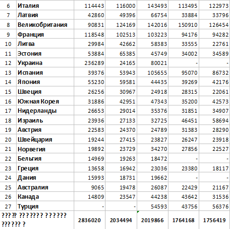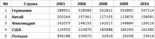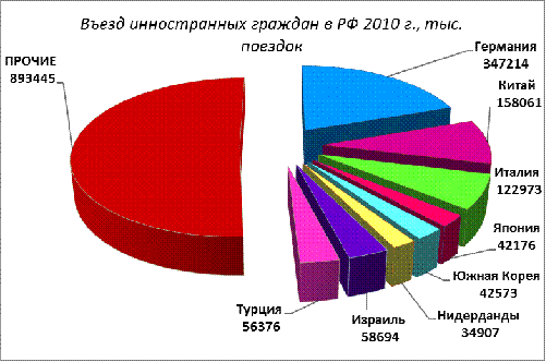 Таблица 1. Въезд иностранных туристов в Россию в 2003-2010 гг., по странам (поездки)