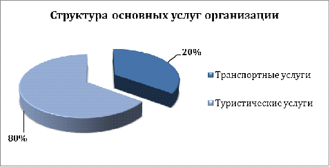 В соответствии с данными на рисунке 2, видно, что компания в основном развивается за счет продаж туристических услуг. Её доля составляет 80%, в то время как доля транспортных услуг составляет 20%.