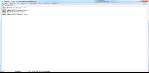 Исходные данные о популярных телепередачах хранятся в файле Pamyatniki.csv (рисунок 1.1).