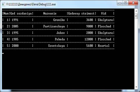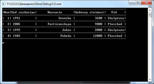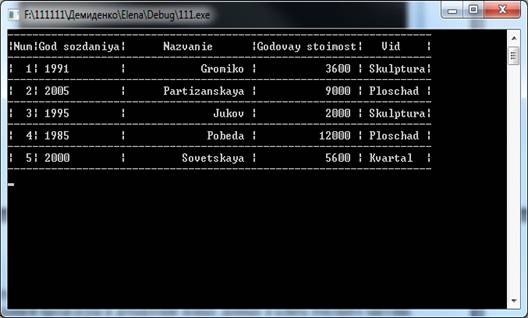 Необходимо разработать программный комплекс по обработке заданного множества данных. Множество данных - памятники города, представляет собой массив указателей.