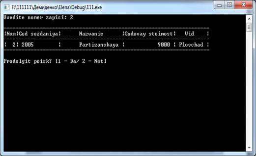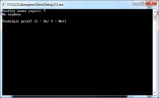 запись с введенным номером. Результат работы представлен на рисунке 2.7.